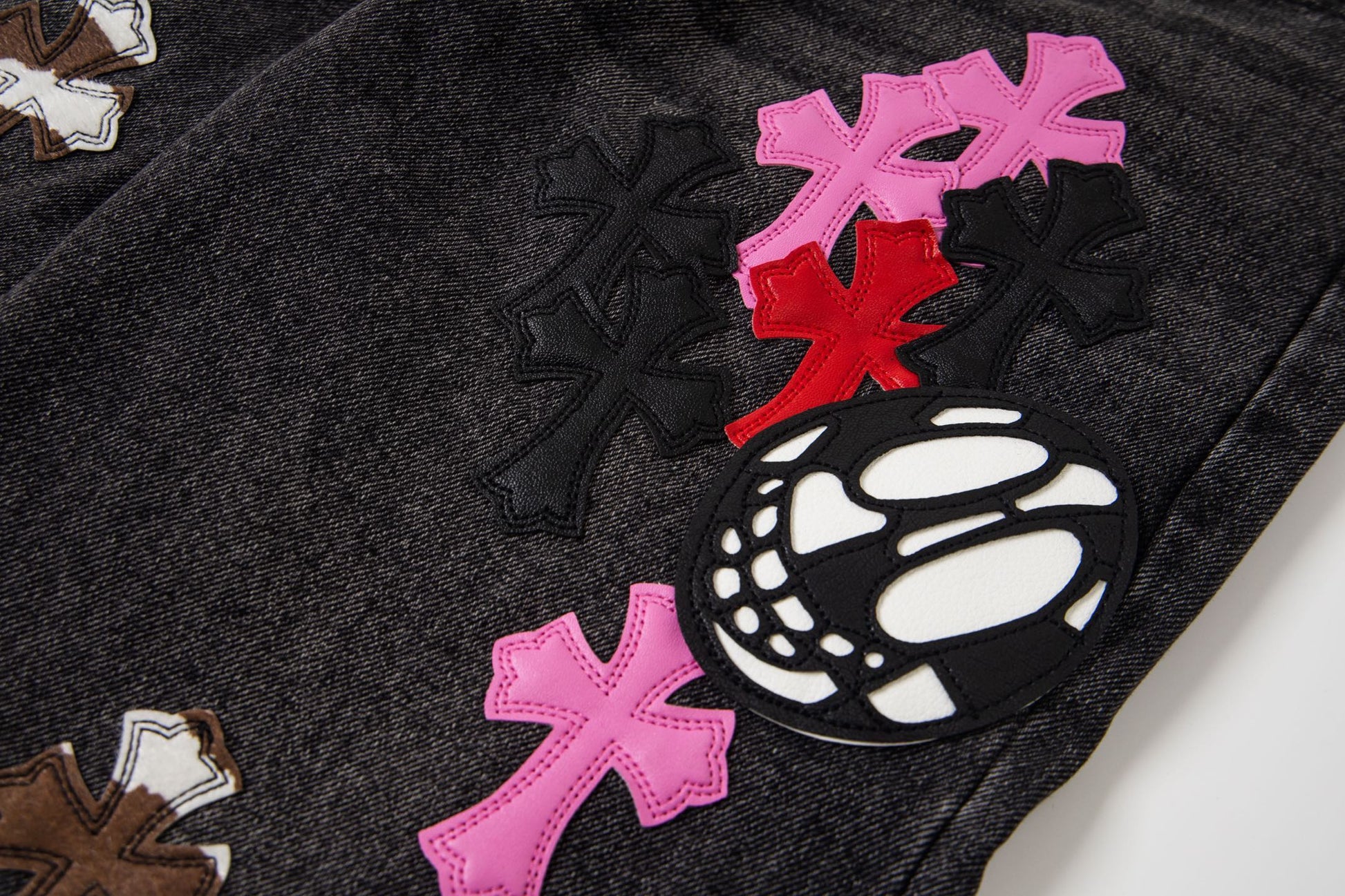 Chrome Hearts Multi Cross Patch Denim Jeans - Grey Gothic Street Pants 1111